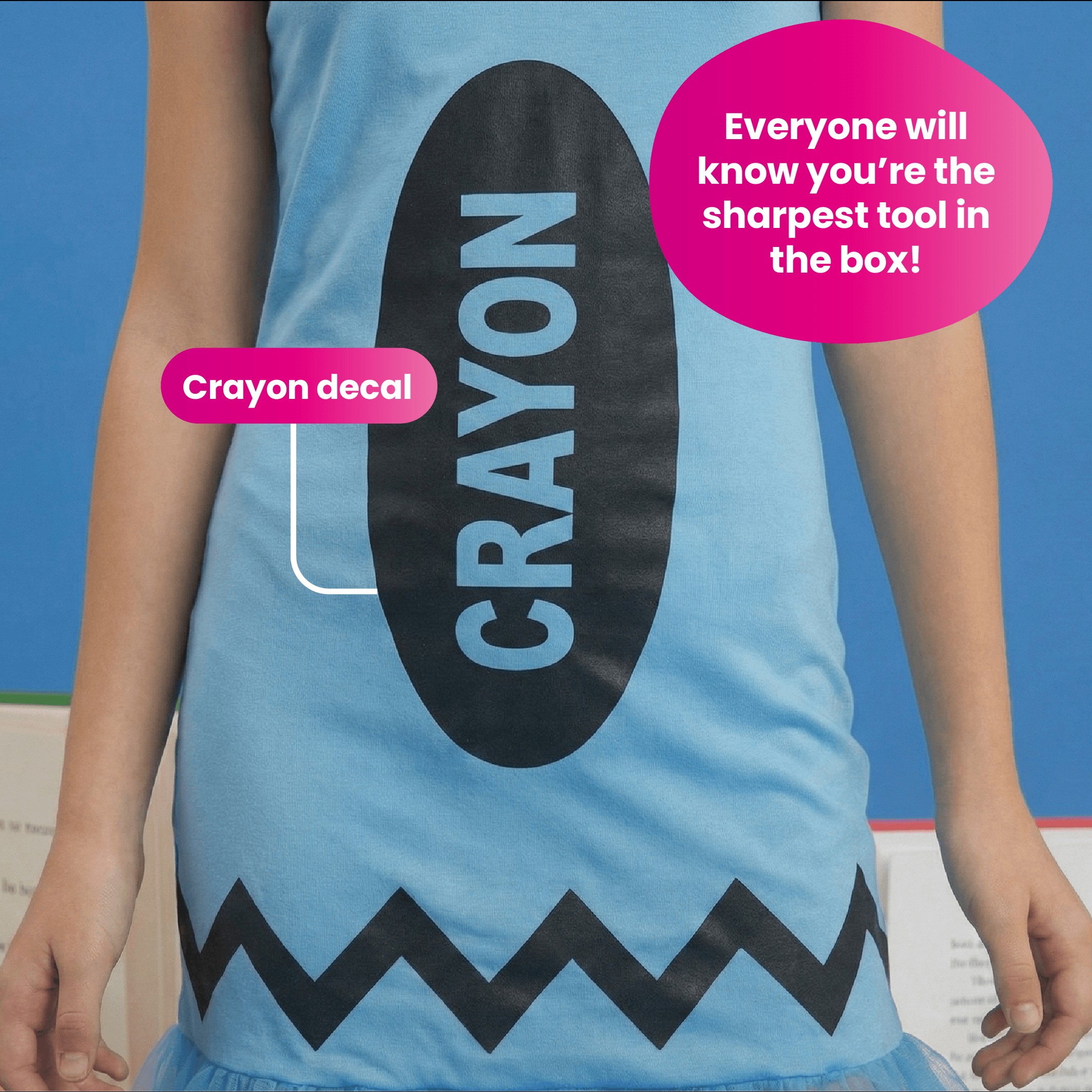 FANTASTIC COSTUME LOOK: From the costumes incredibly iconic and classic design to the comfortable silk touch of the dress, your Child’s Crayon Dress will draw the crowd in at any party you attend!