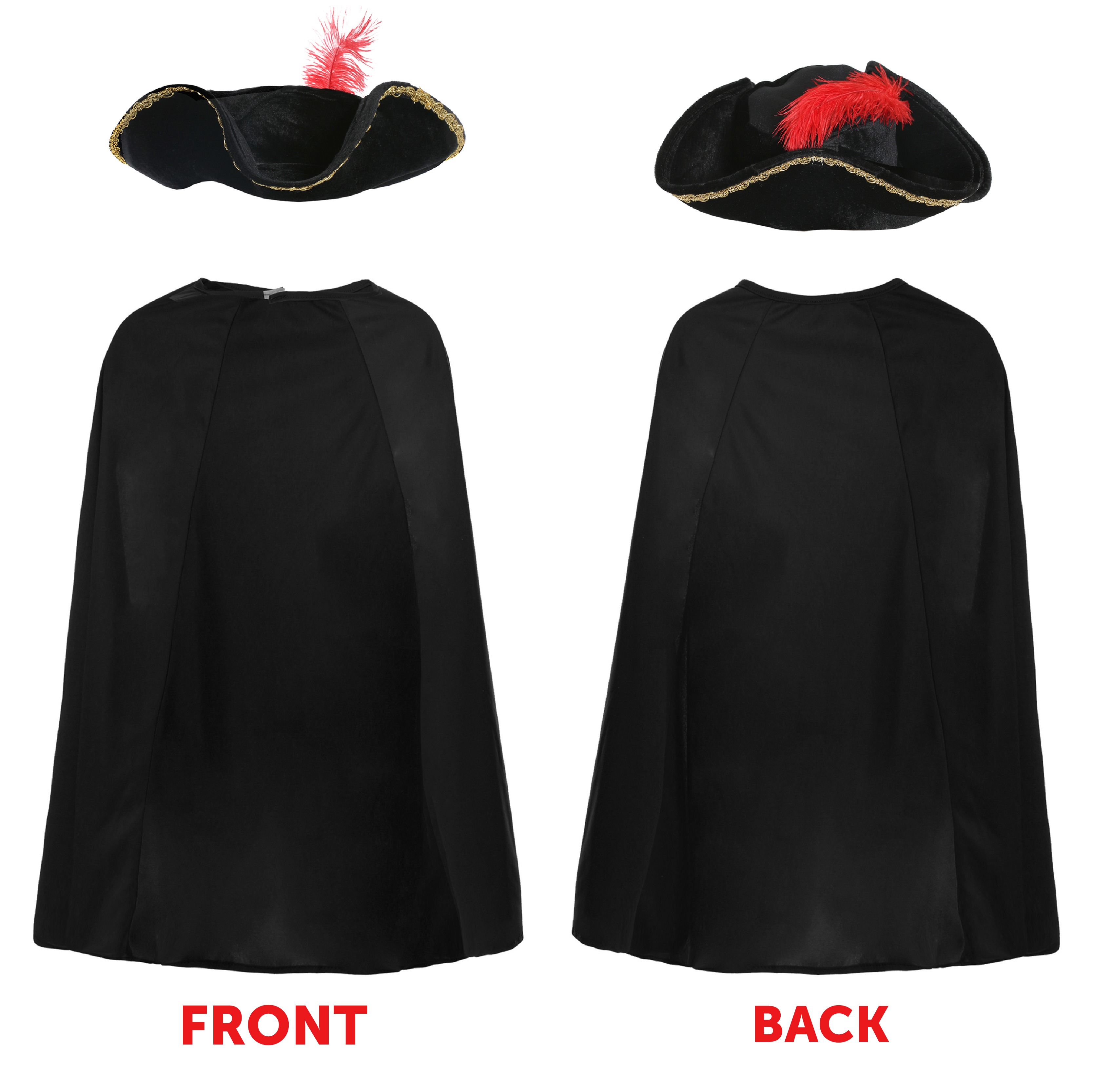 AMAZING QUALITY: The fabric of this cape is sleek with a strong feel, as well as our Tricorn Hat being extremely durable and sturdy. The Black Belt is a leather-look and feel belt with a hook and loop latch, providing a secure and comfortable fit. You won’t believe how good you’ll look and feel once you get this costume on!