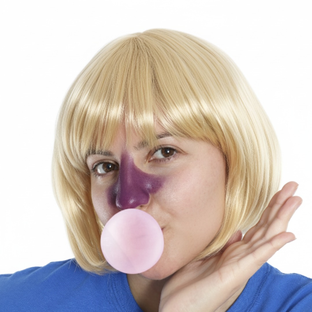 SET INCLUDES: Your Blue Golden Ticket Winner Set includes a short and sleek Blonde Bob Wig and a palette of Purple Face and Body Paint, an iconic look for any fancy dress event!
