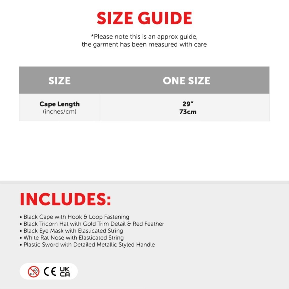 Childs Highway Rodent Costume | 6 Pcs | Cape, Feather Tricorn Hat, Mask, Nose, Sword & Tail £15.99