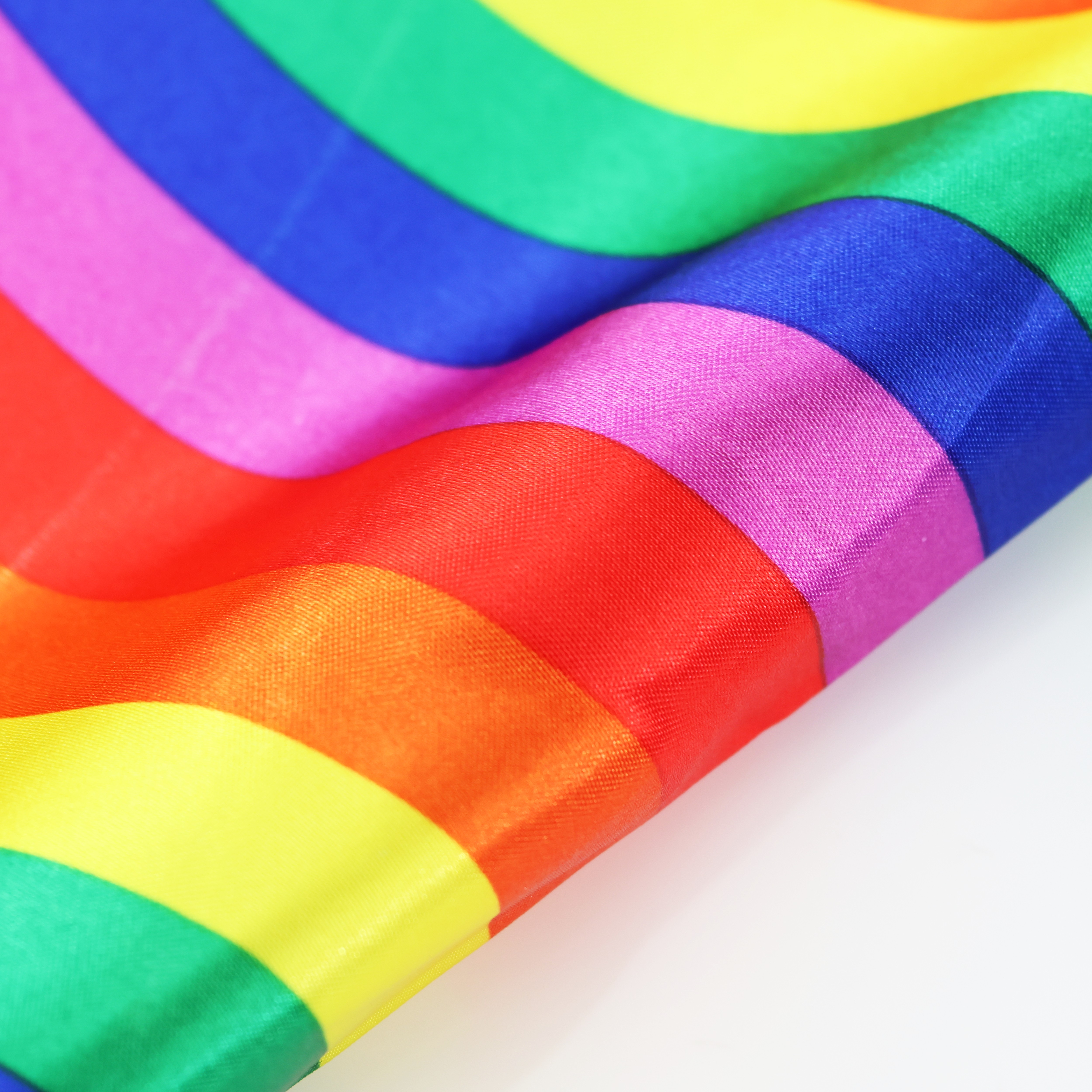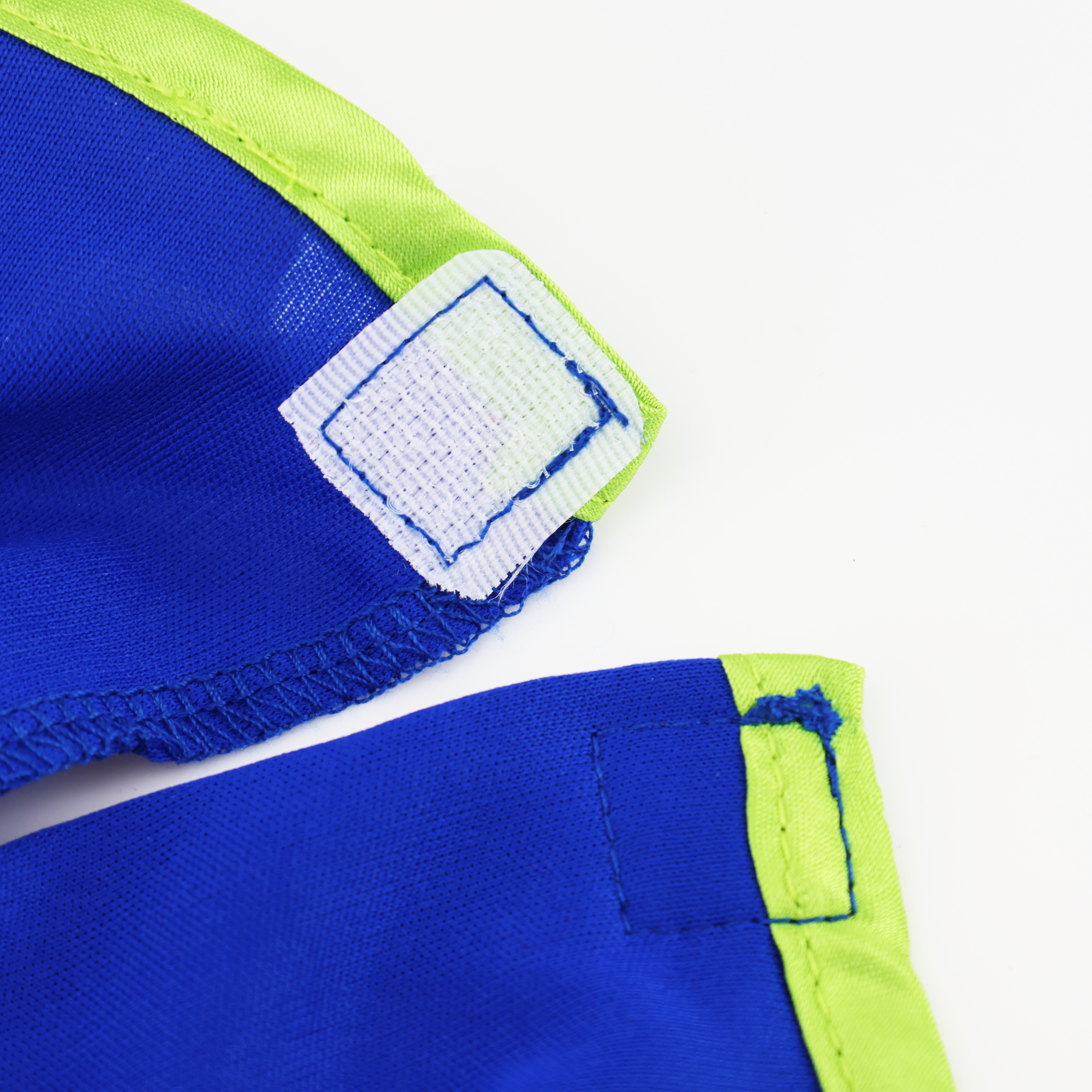 - Blue satin top with rainbow long sleeves