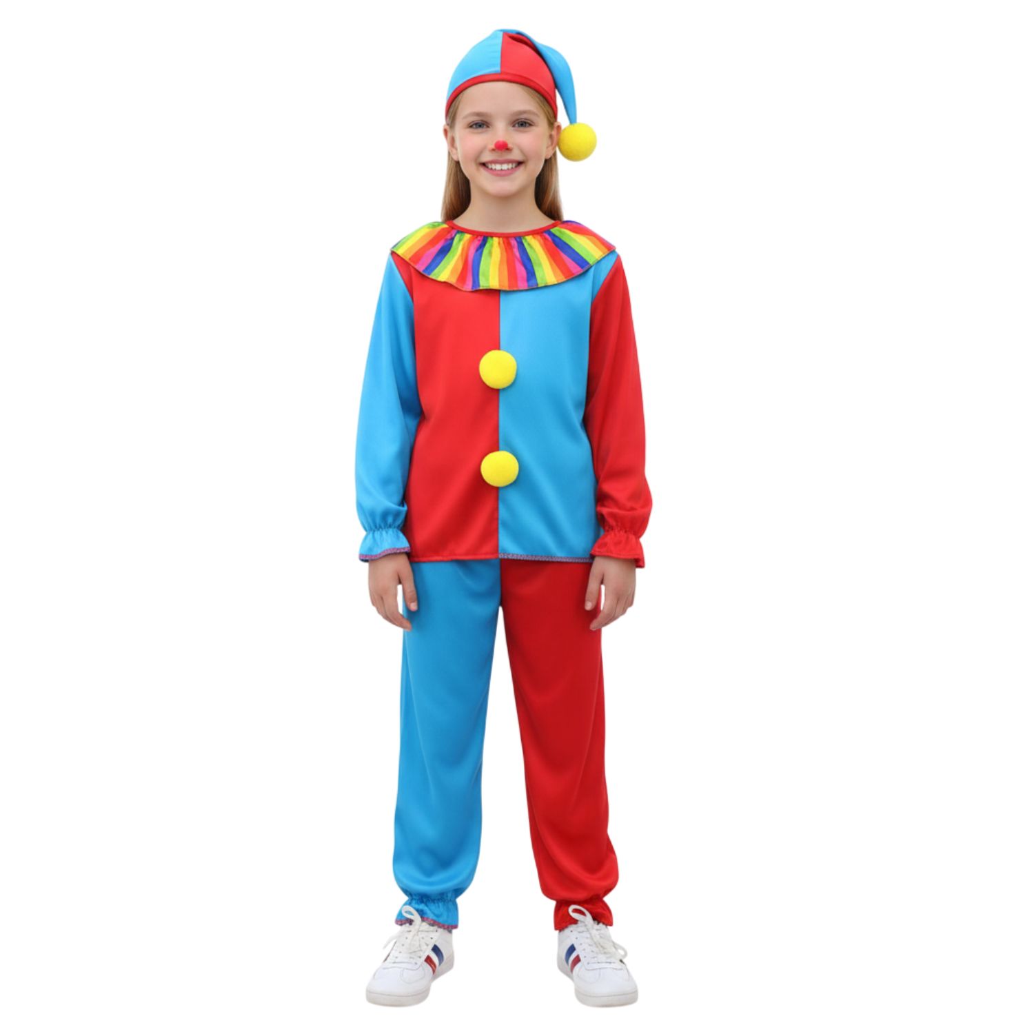 Add a burst of colour and fun to dress-up time with this Kids Clown Costume. Perfect for parties, school events, World Book Day, and Halloween, this bright outfit creates a classic circus-inspired look that’s playful and comfortable to wear.
