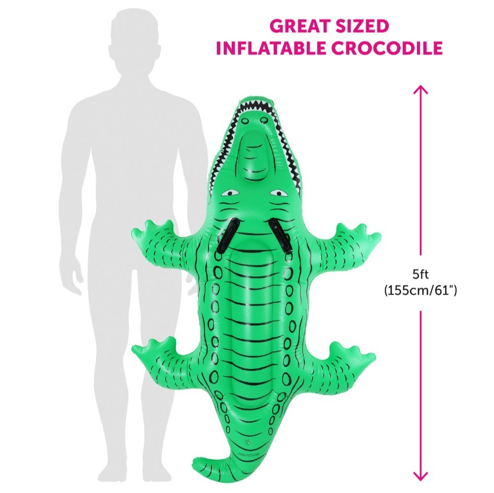 The inflatable crocodile measures approximately 5ft (155cm / 61") in length, making it the perfect oversized accessory for your Australian Crocodile Keeper look.