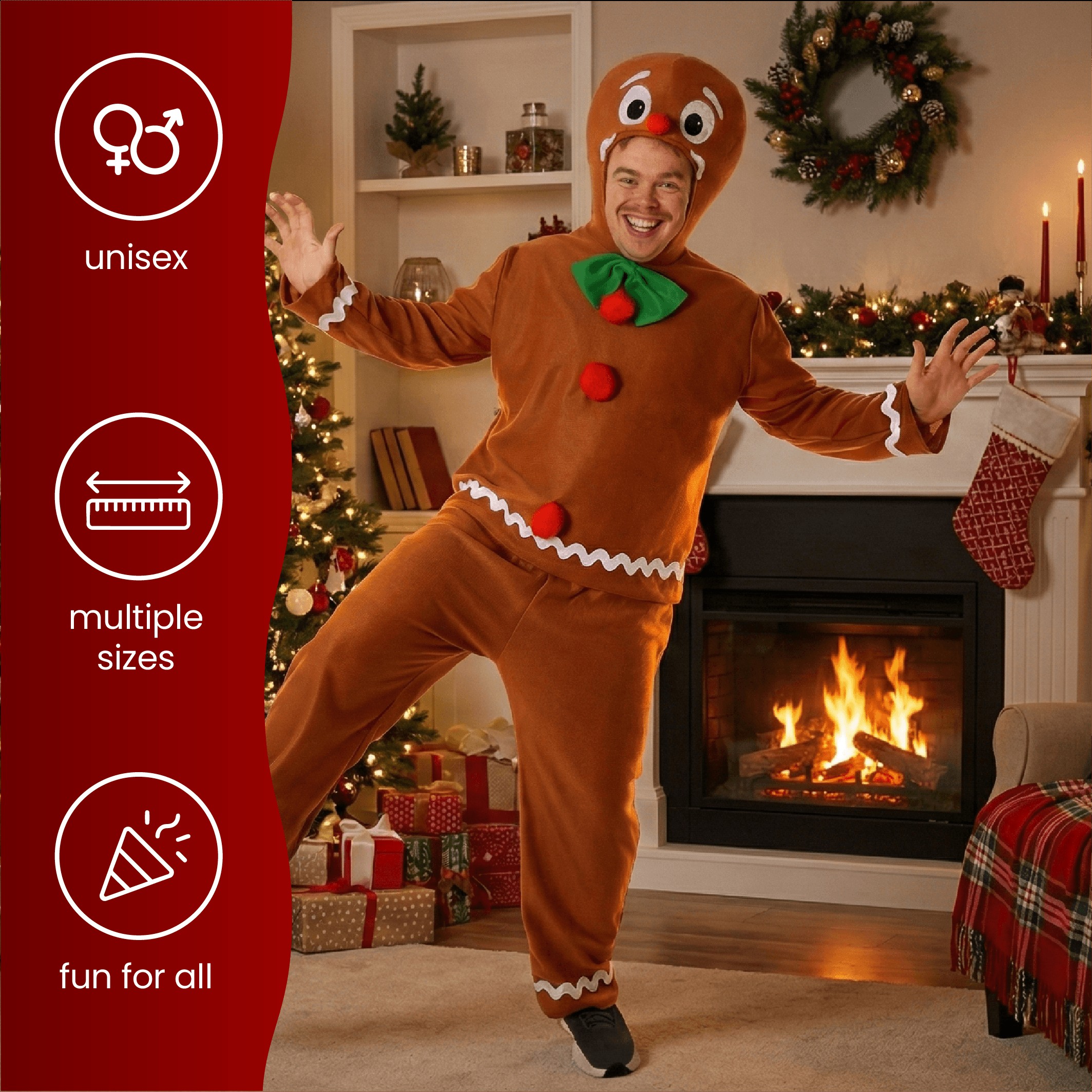Bake up some fun this Christmas with the Adults Gingerbread Man Costume — a sweet and spirited outfit that’s sure to be the icing on any festive occasion!