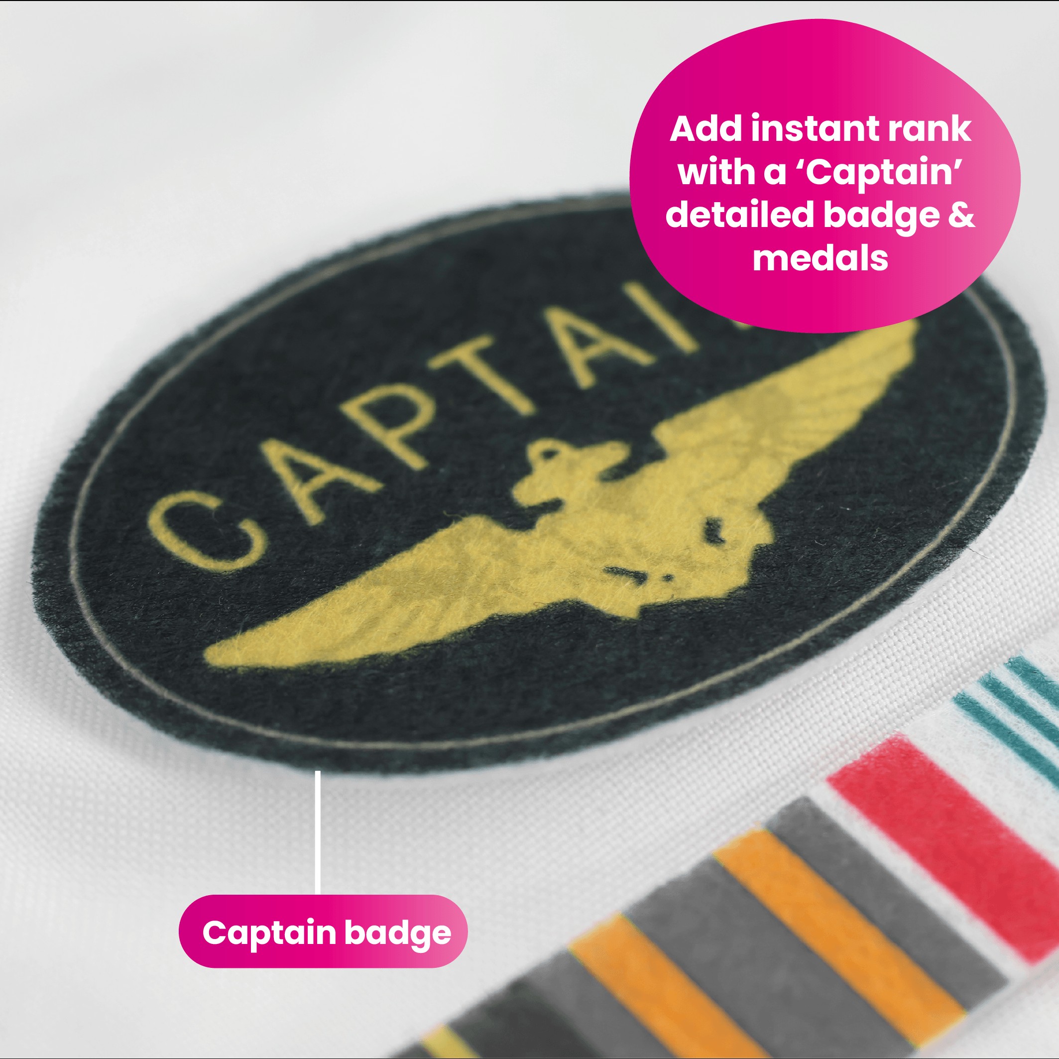 - A traditional white sailor hat to finish your seafaring ensemble in true captain style