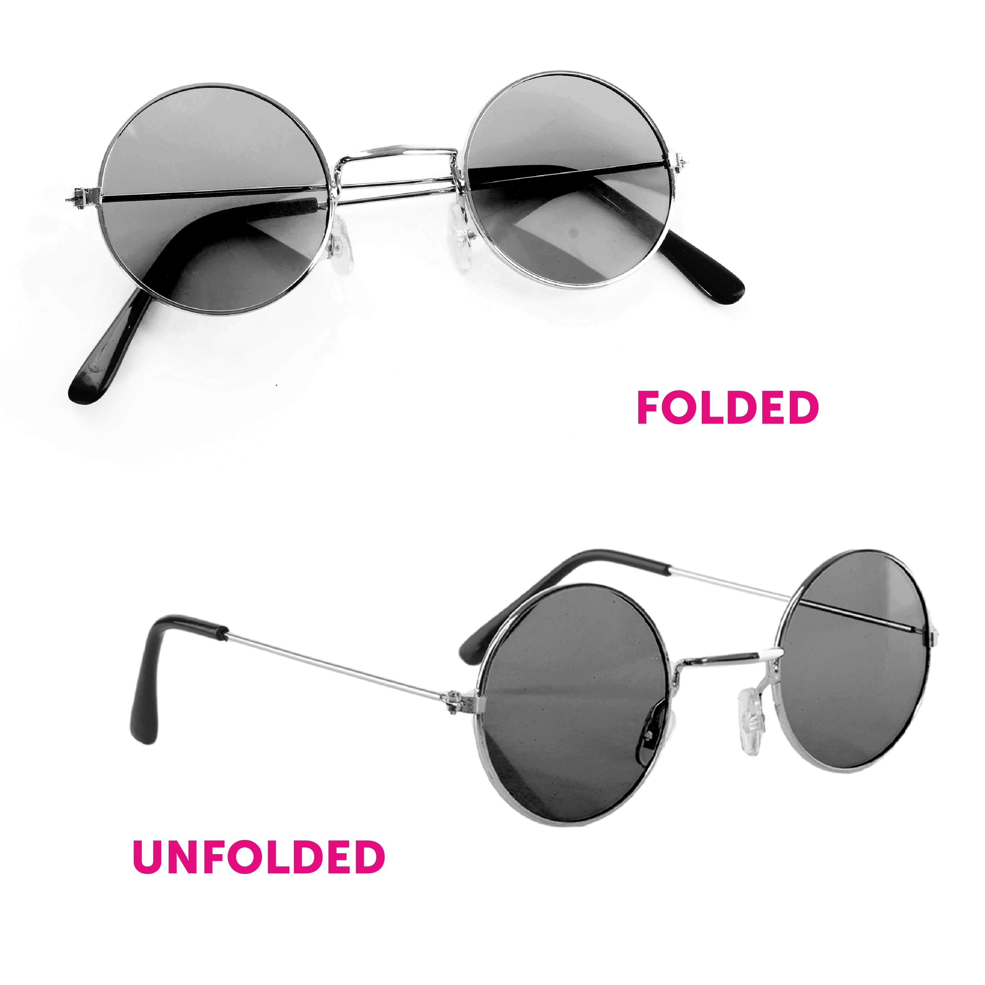 Round glasses with black lenses to complete the signature look