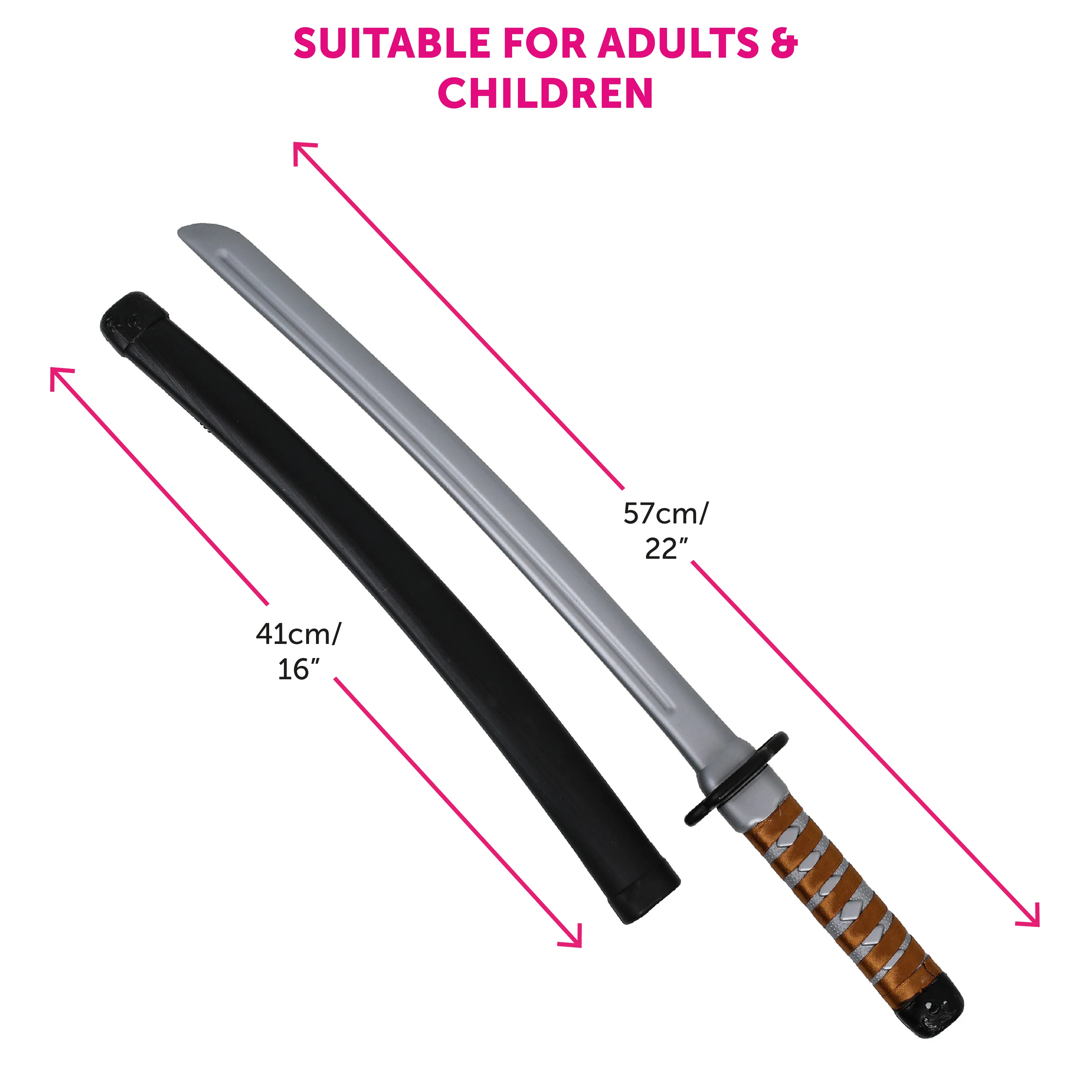 - Plastic Katana Sword with bronze ribbon covered handle and black scabbard