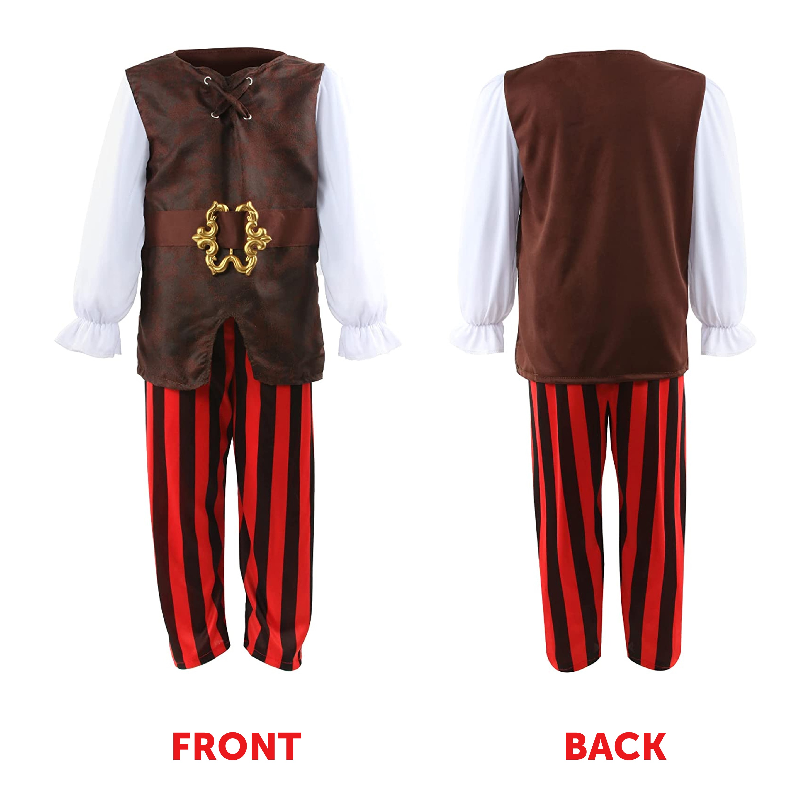 Boys Pirate Costume | 8 Pcs | Costume, Hats, Eye Patch, Earring, Coins, Hook & Sword
