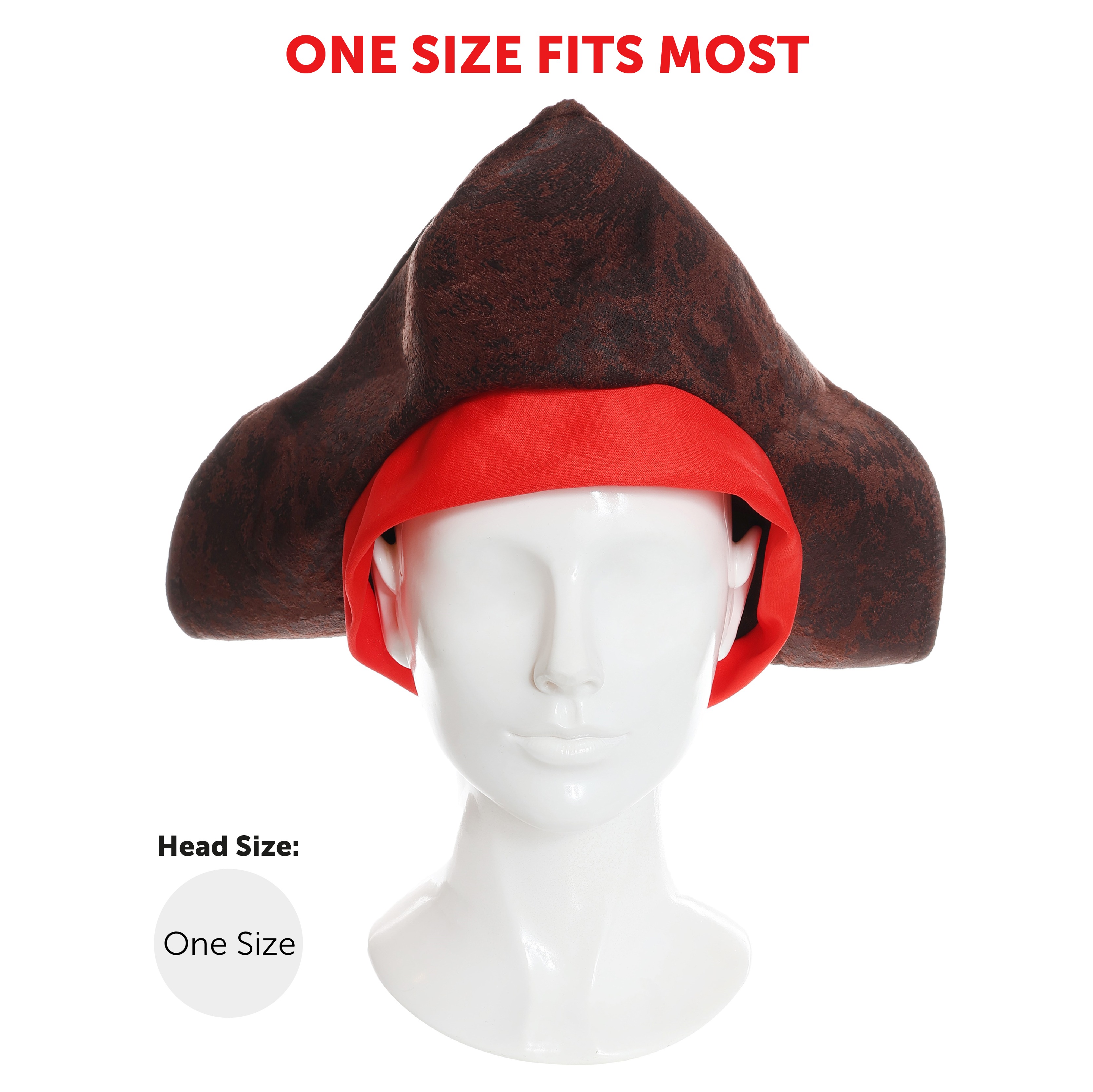 - Brown leather-look pirate hat with red band