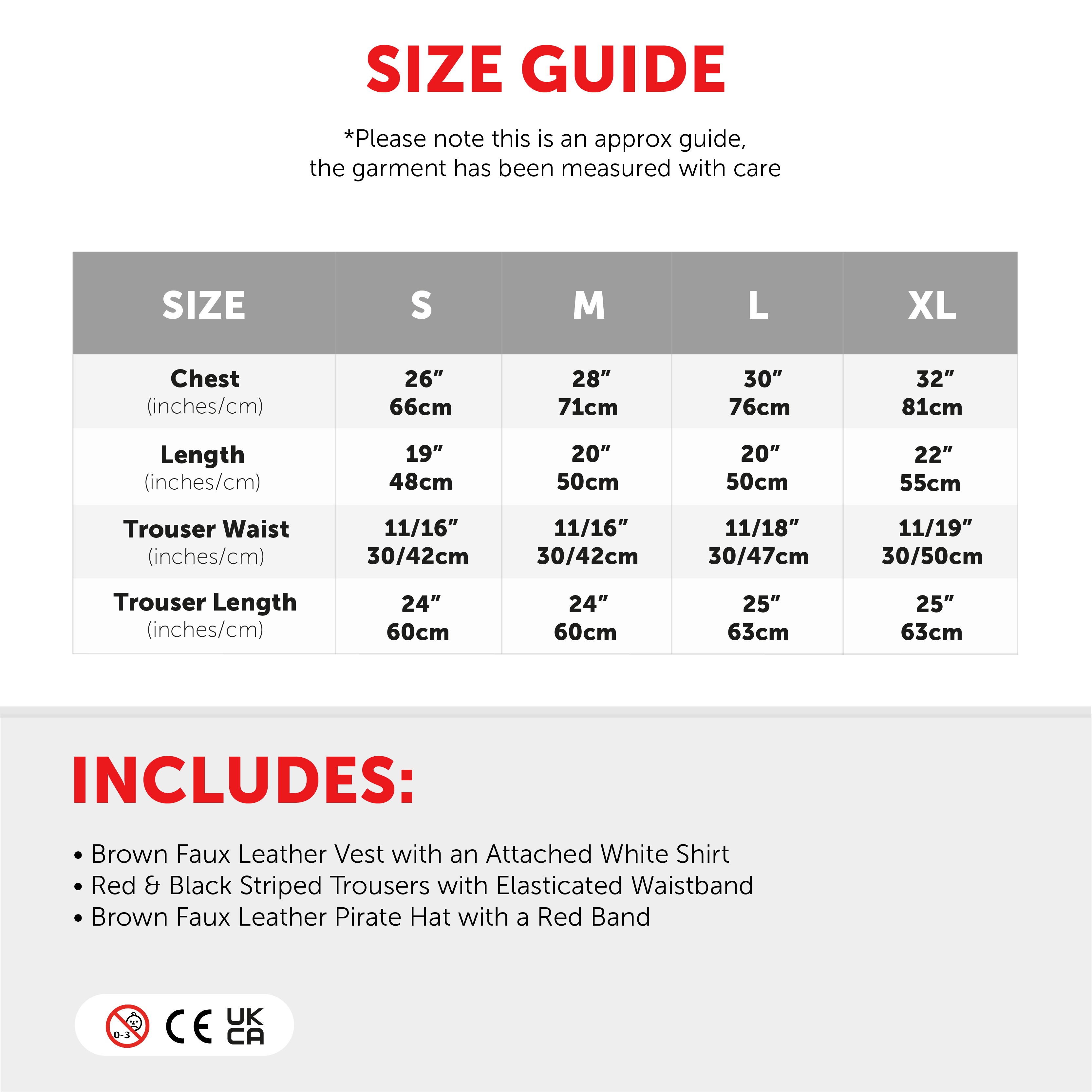 The layered vest and shirt design makes dressing quick and easy, while the bold striped trousers create a classic pirate look. The elasticated waistband ensures a comfortable and flexible fit, perfect for active play and all-day wear.