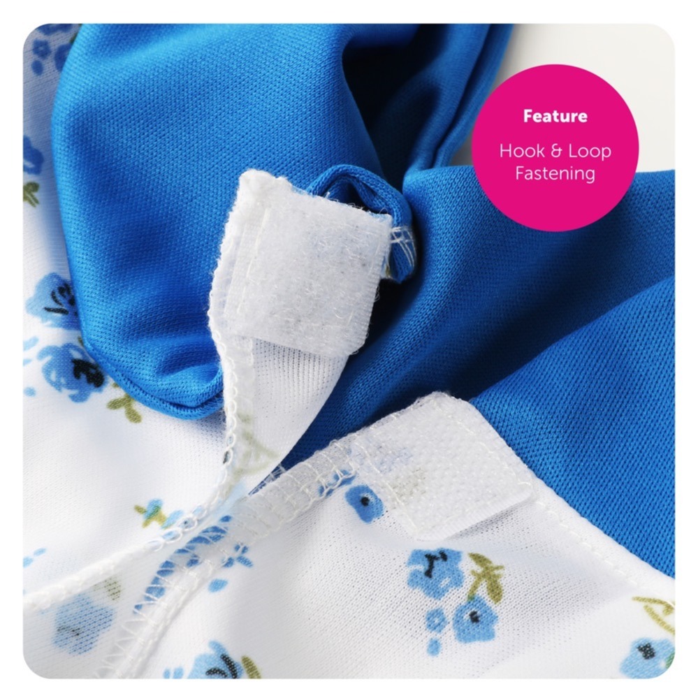 The long white dress features delicate blue floral detailing, finished with a coordinating blue collar and cuffs for a classic school-day style. Comfortable and lightweight, it’s perfect for all-day wear at school celebrations and fancy dress events.