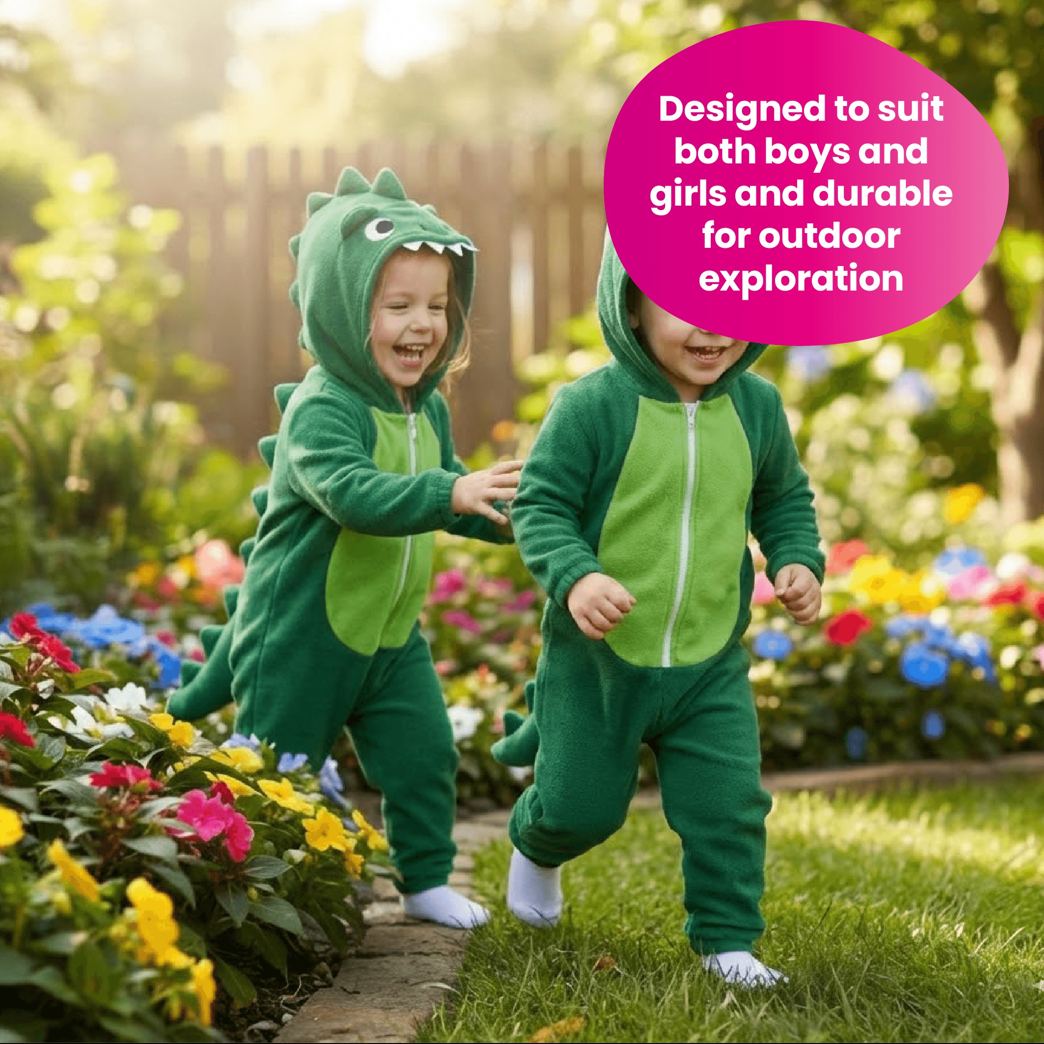 Designed as an all-in-one outfit, this onesie is easy to put on and allows freedom of movement for play and adventures.