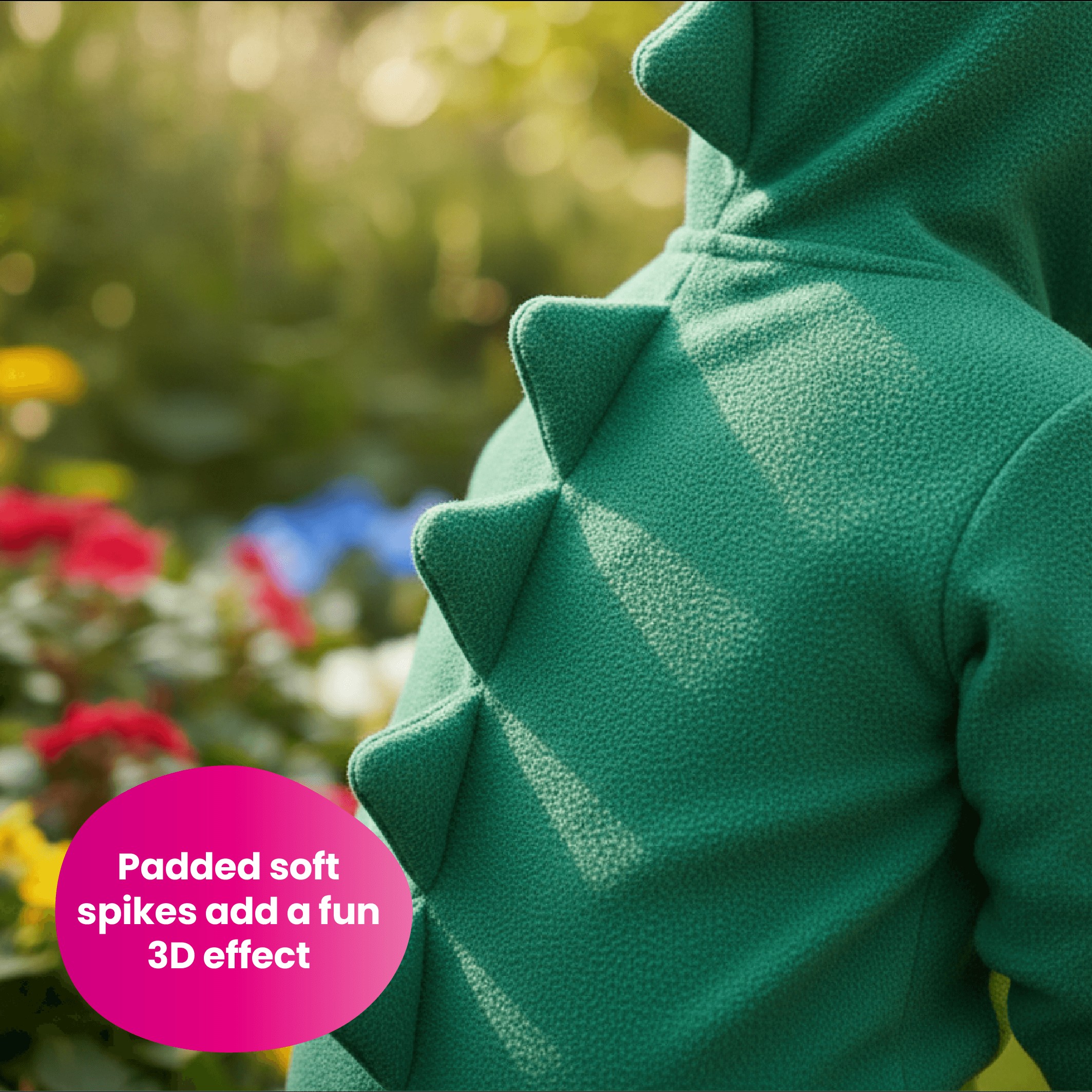 - Attached hood with a dinosaur head for a fun character look
