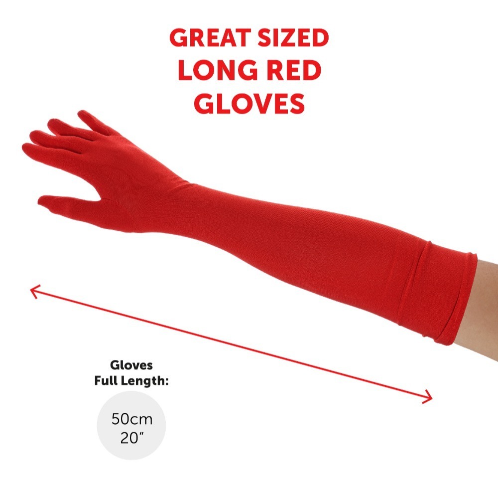 Complete your look with these glamorous long red gloves, made from a soft and comfortable material ideal for extended wear.