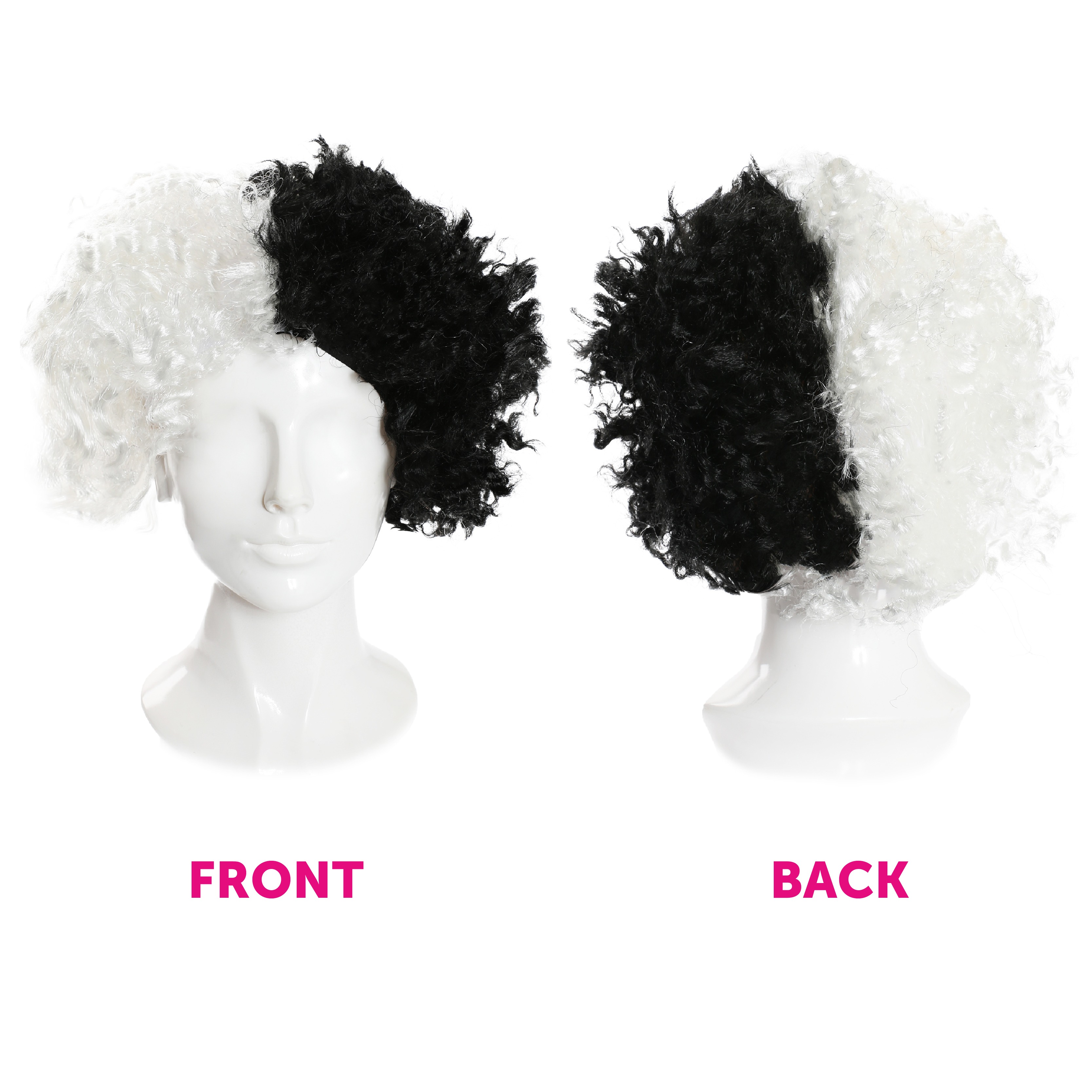 This half black and half white wig is styled into a striking crimped afro, giving you a dramatic twist on the iconic villain-inspired hairstyle — perfect for fancy dress occasions.