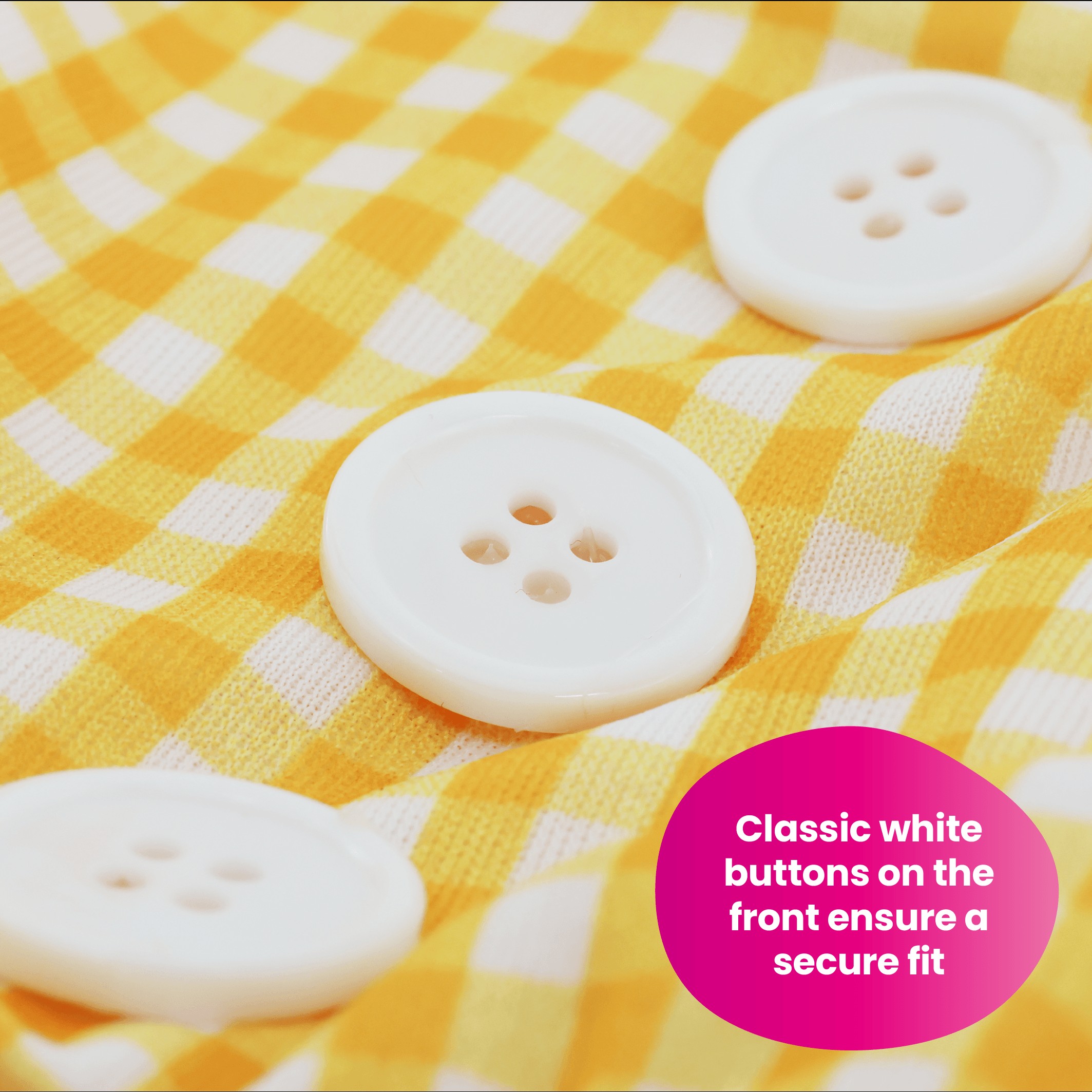 The cheerful checked pattern and cute bear detail give this outfit a classic storybook feel, making it ideal for book events, group costumes, or themed celebrations.
