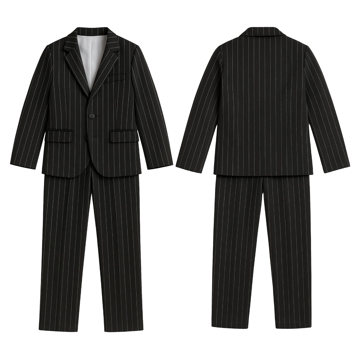 The adults suit is a two-piece pinstripe design featuring a smart jacket and matching trousers with button fastening and an elasticated waistband for comfort and easy wear. The included white shirt features a lace-up black collar detail, adding extra character and a rugged, villain-inspired finish to the look.